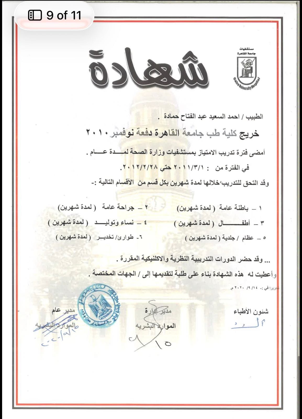 - استشاري علاج الألم بمستشفيات جامعة القاهرة