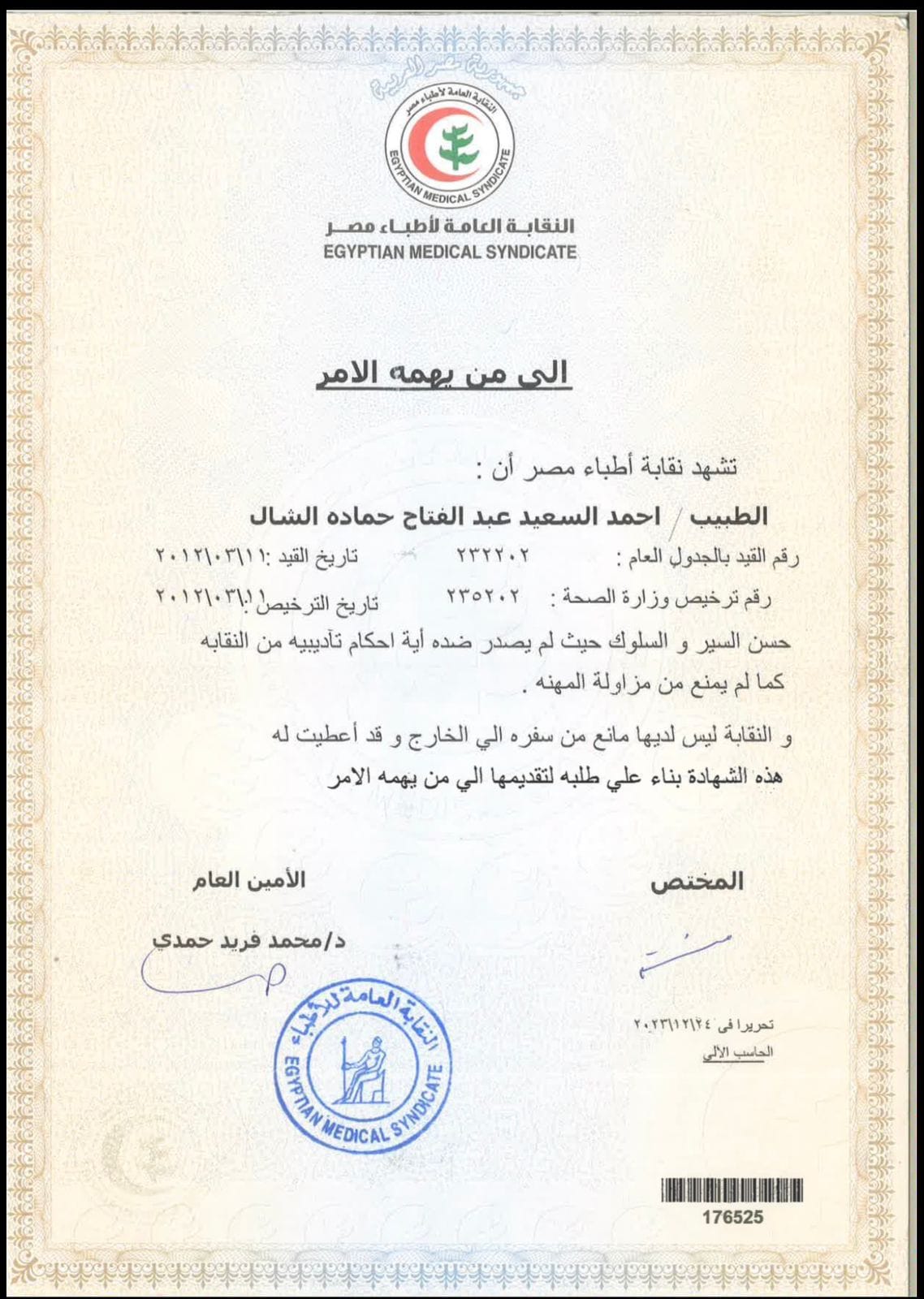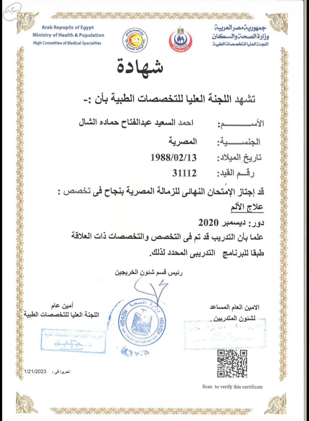 - عضو الجمعية المصرية لأطباء الألم المزمن